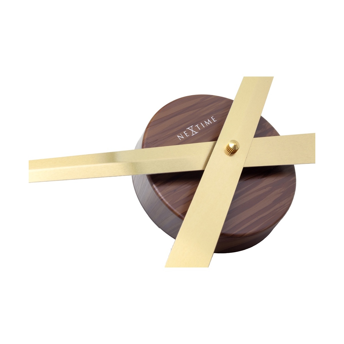 Zegar 2269 BR 'Hands’, którego projektantem jest NeXtime, posiada mechanizm skokowy zasilany za pomocą baterii typu AA. Zegar wykonany z aluminium w kolorze orzech, złoto. Jego średnica to 85 cm , grubość: 4,5cm, a waga wynosi 0,1kg.