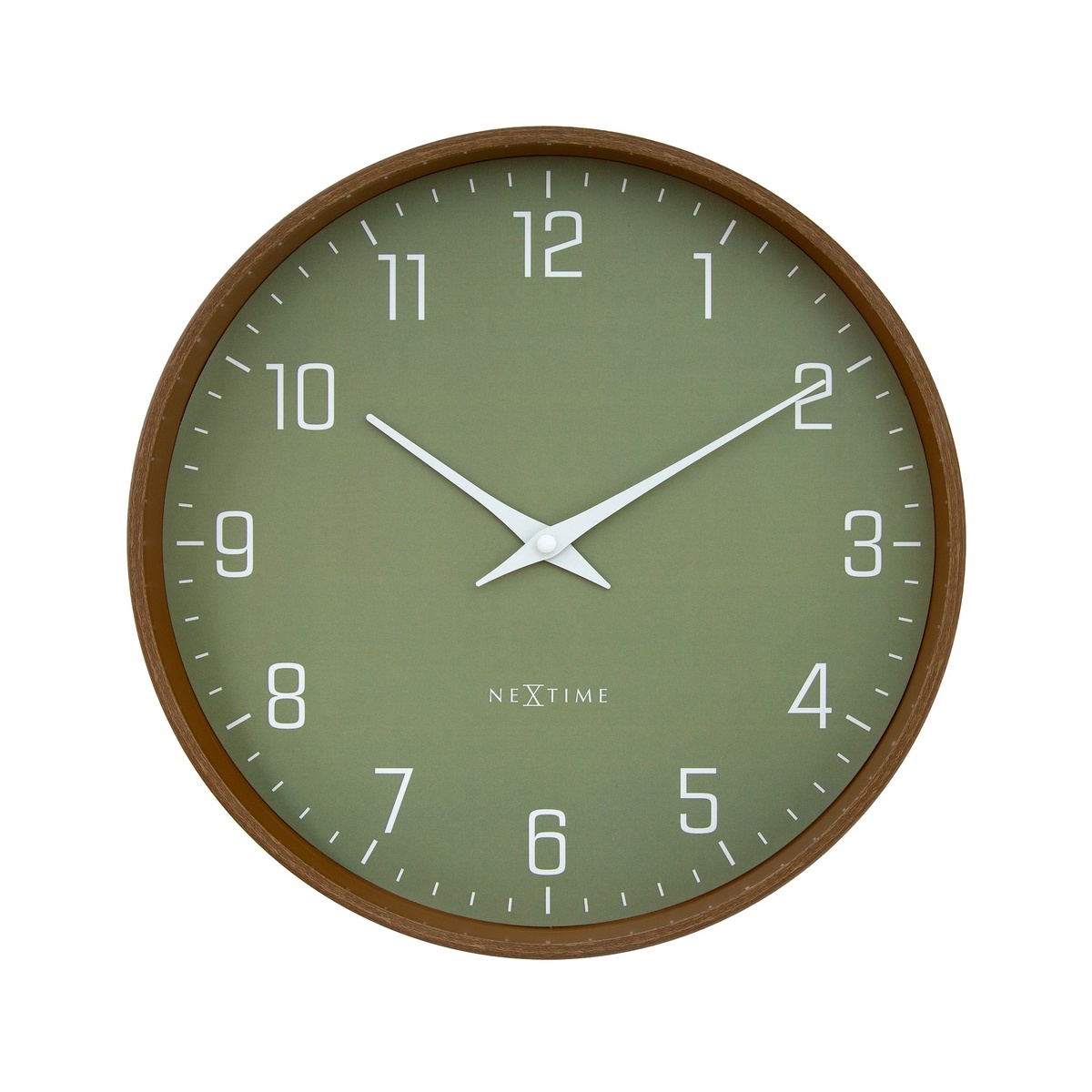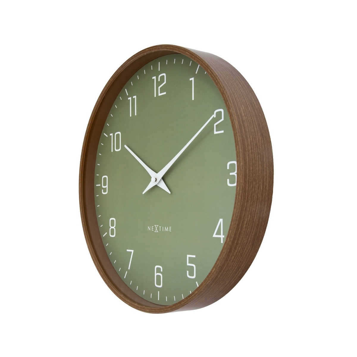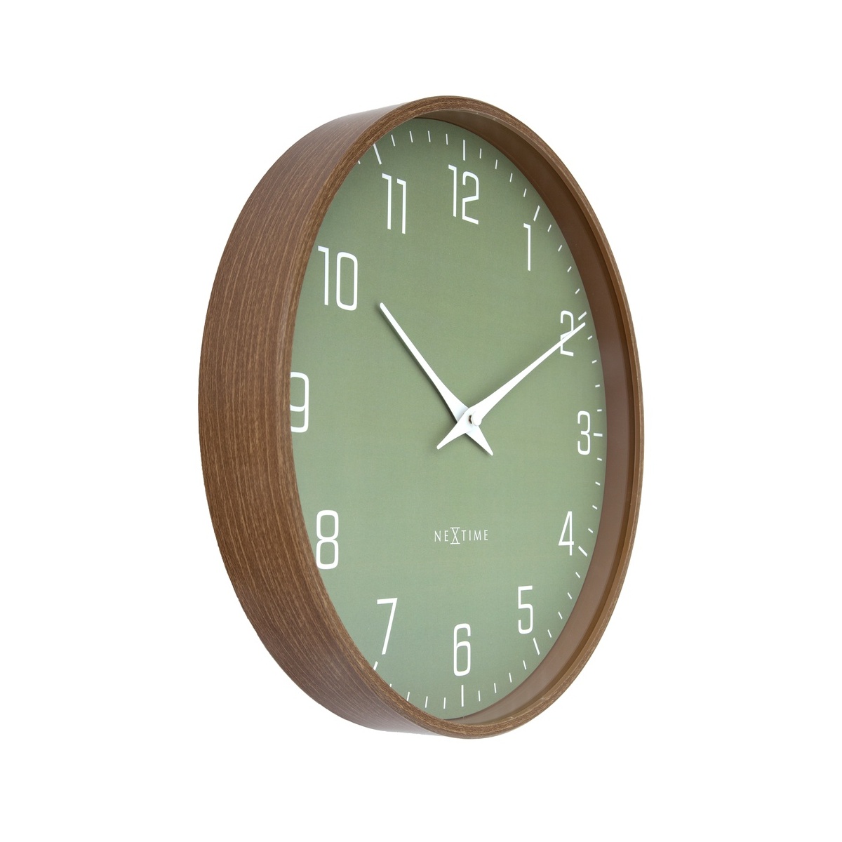 Zegar NeXtime 'Lyra’ to stylowy zegar ścienny o średnicy 30 cm, który wyróżnia się prostym i eleganckim designem. Obudowa zegara wykończona jest w ciemnym wzorze drewna orzechowego, co nadaje mu ciepły, naturalny charakter i sprawia, że doskonale komponuje się z nowoczesnymi oraz klasycznymi wnętrzami.